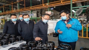 20-02-28眉山市委書記慕新海蒞臨公司檢查疫情防控和復工復產(chǎn)工作 2月22日上午,市委書記慕新海等市領導一行到公司檢查指導工作,莊繼??偨?jīng)理匯報了公司防疫工作落實情況以及復工復產(chǎn)進展情況。慕新海書記實地查看了公司產(chǎn)品的生產(chǎn)現(xiàn)場,詳細聽取了公司在復工復產(chǎn)中存在的困難與問題。慕新海書記強調,當前,疫情防控工作到了最吃勁的關鍵階段,要在嚴格做好疫情防控工作的前提下,有序組織復工復產(chǎn);要不斷完善和優(yōu)化防控工